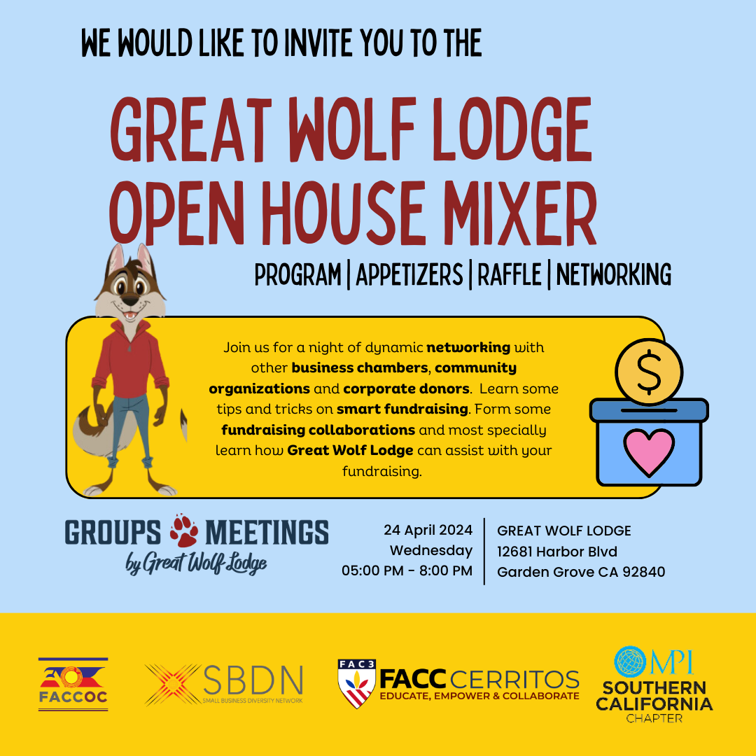 We are thrilled to announce our partnership with Great Wolf Lodge in Garden Grove! All proceeds from MPI-SCC registrations will go to fund the Arlene Sheff and Beverly Laing Scholarship.