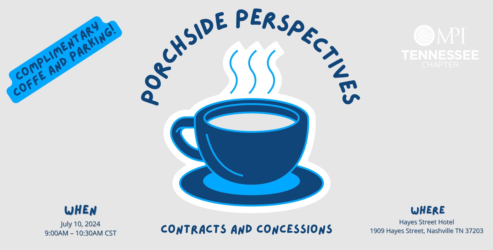On the second Tuesday of every month, MPI Tennessee will gather over complimentary coffee at Hayes Street Hotel, and dive into meaningful conversations on a new industry topic each month.