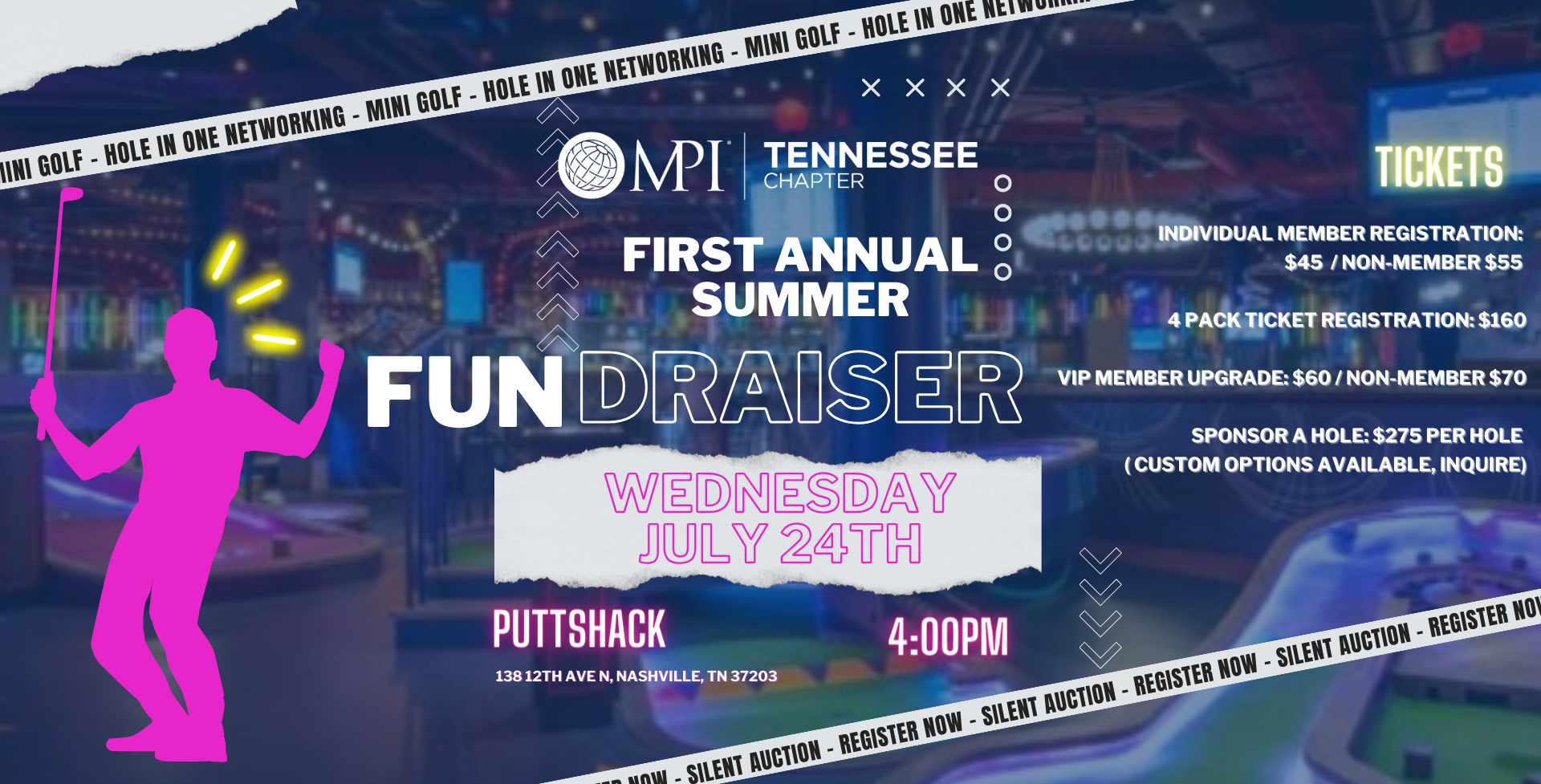 Join us for an unforgettable evening of fun, competition, and camaraderie at the MPI Tennessee Chapter Mini-Golf Tournament at Puttshack! Whether you're bringing your home family or your work family, this event promises a fantastic night filled with food, drinks, and mini-golf, all while supporting the MPI Tennessee Chapter.