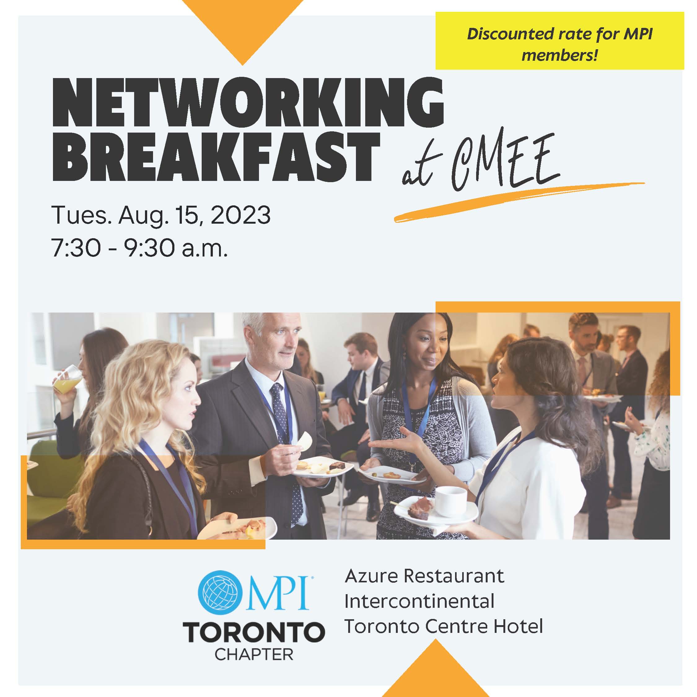 MPI Toronto Chapter is planning our very first CMEE breakfast being held on the opening morning of CMEE, August 15th, 2023, in the Sapphire/Turquoise Room, Azure Restaurant at the InterContinental Toronto Centre Hotel attached to the Metro Toronto Convention Centre where CMEE will be held!