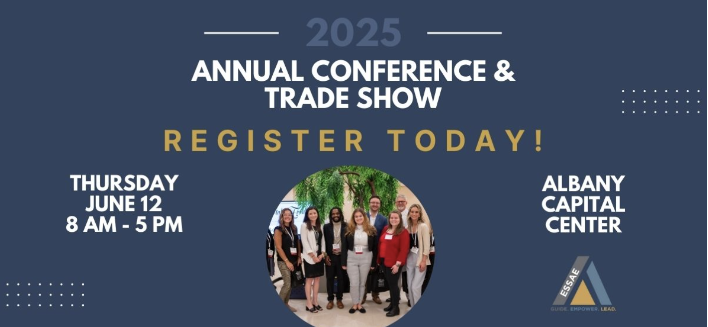 The ESSAE Annual Conference & Trade Show is the premier association management and meeting professionals conference and trade show in upstate New York. This year’s show will take place at the Albany Capital Center in Albany, NY on Thursday, June 12th, 2025. The annual one-day conference is about professional development, networking, and showcasing products and services, and is the place to interact with key decision makers in the association and hospitality industries. The annual conference celebrates the true partnership of our association colleagues, meeting professionals, and exhibiting partners all across New York State.