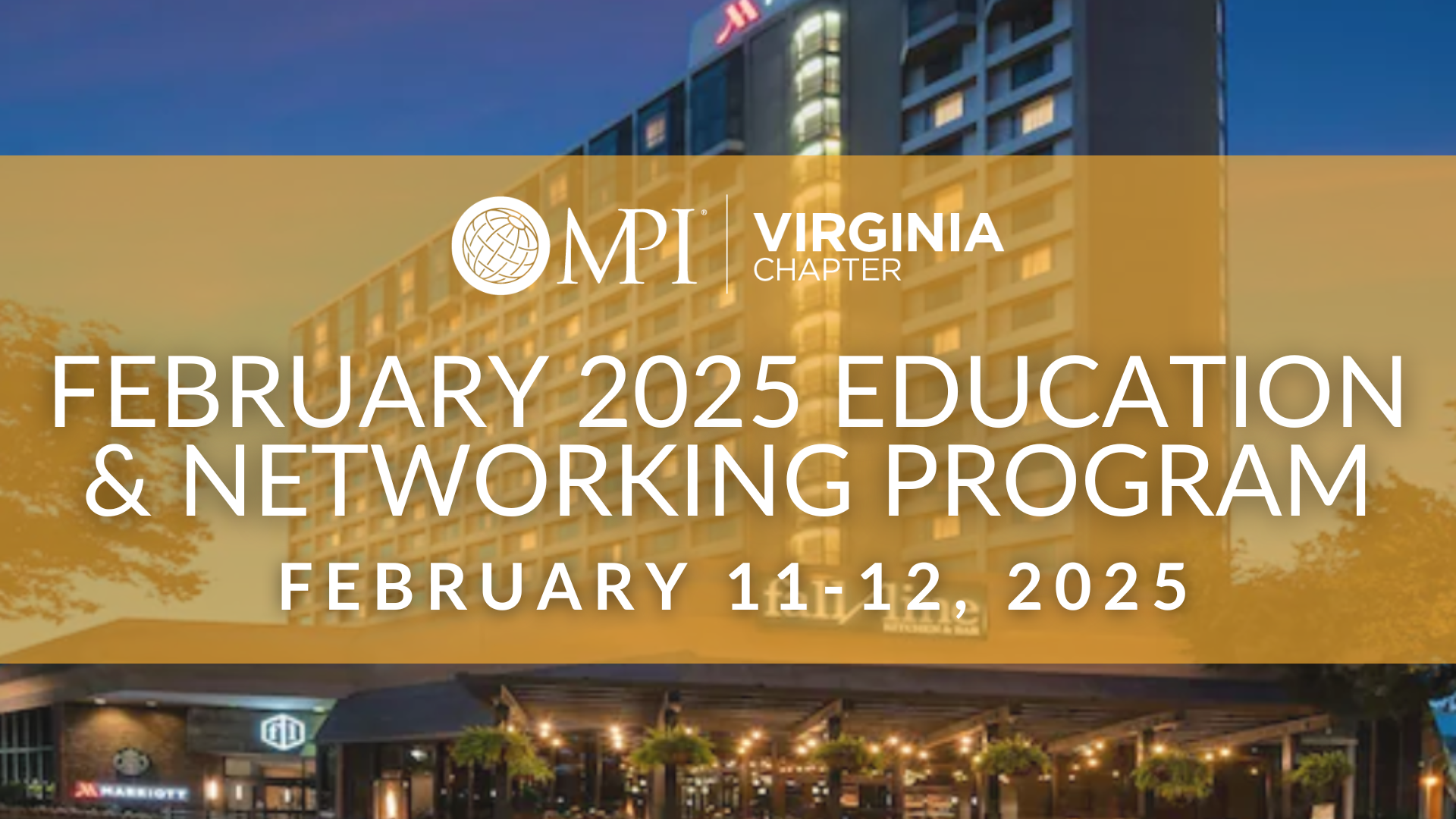 MPI Virginia's February 2025 Education and Networking Program will take place February 11-12, 2025 at the Richmond Marriott Downtown in Richmond, VA.
