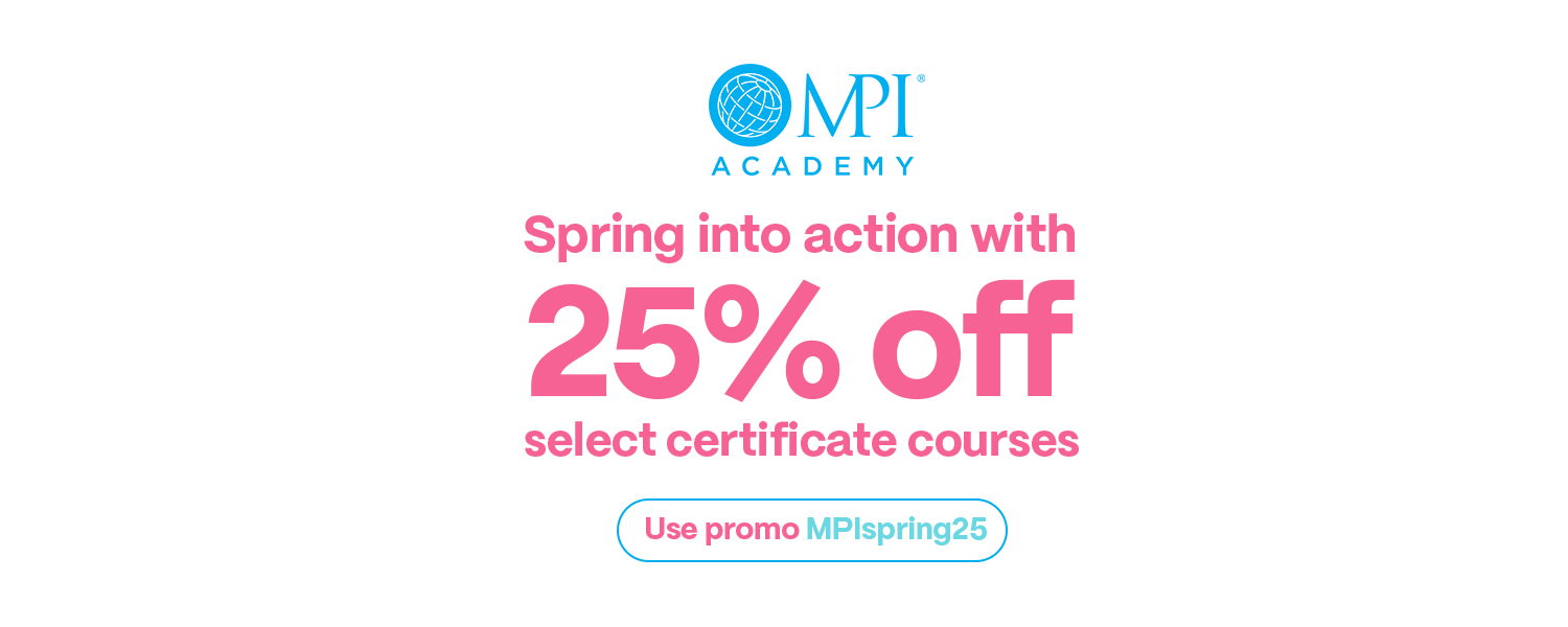 MPI Academy boasts over fifteen unique certificate courses – now 25% off with promo code MPIspring25 for a limited time! Thousands of event professionals turn to the MPI Academy every year to rise to their next opportunity, to make the change they seek and impact the world.