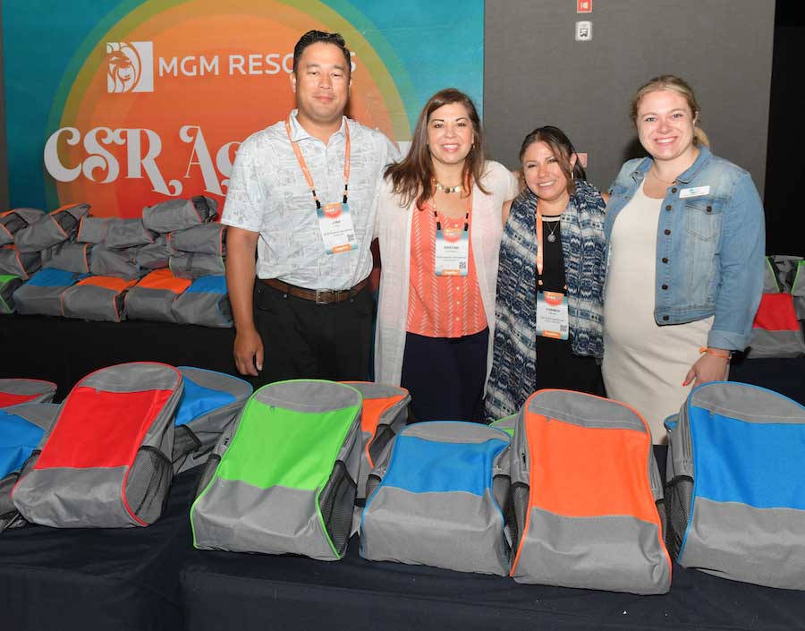 - Attendees put together 90 backpacks, each packed with 13 to 20 different supplies. The backpacks will go to children who are living in group homes due to displacement from domestic violence situations. MGM Resorts provided items for this project, including backpacks, notebooks, writing utensils, art supplies and everything else students will need for the school year.