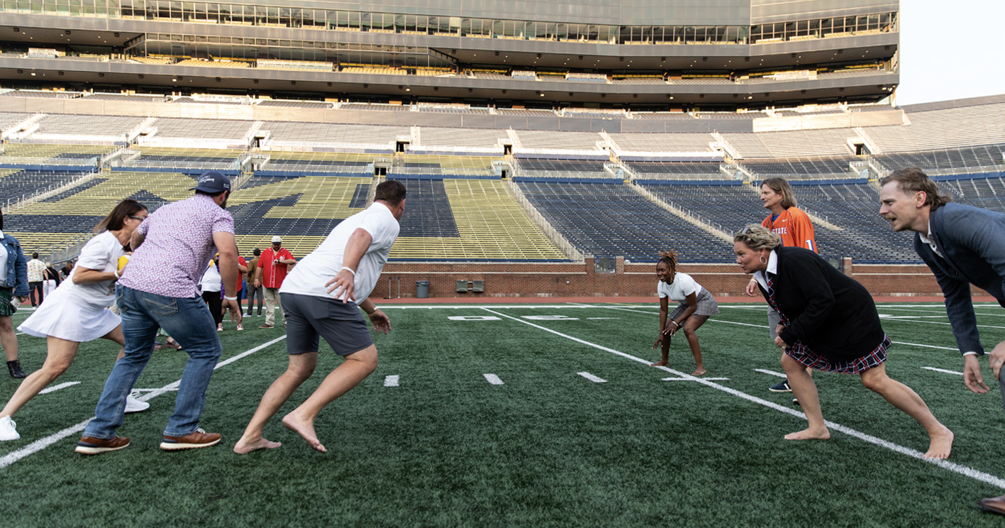 "‘Homecoming’ was the theme, and we asked attendees to wear their favorite team apparel," Bahr says. "Along with a variety of activities inside the Jack Roth event space, we arranged for the guests to visit the locker room, walk (or run) the tunnel and make their way onto the field. ‘The Big House’ provided a night that our attendees truly enjoyed."