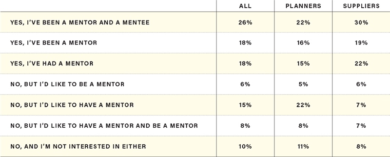 Additional insights shed light on the state of mentorships for event professionals overall—planners and suppliers.